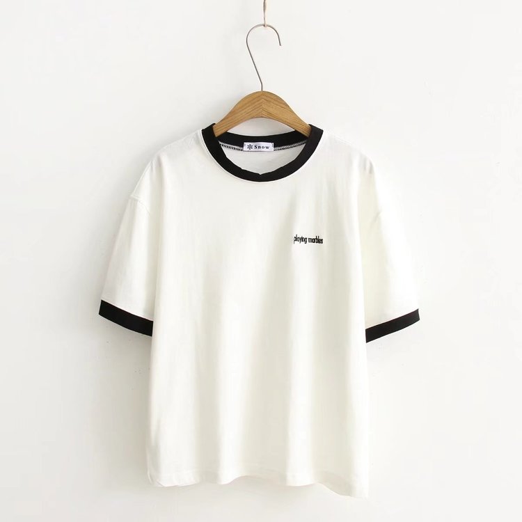 BX4085 短袖T恤女夏新款學院風拼色圓領t恤字母刺繡寬松百搭上衣