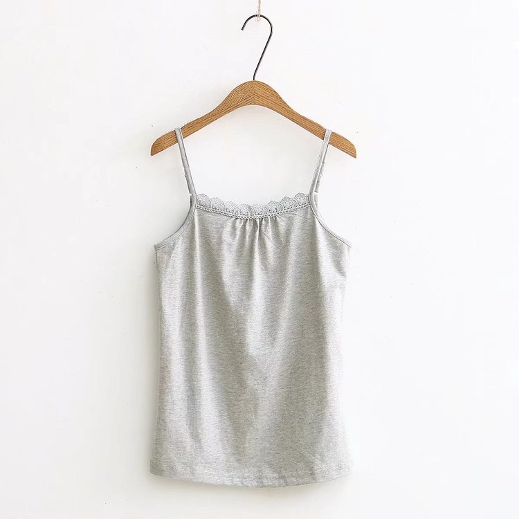 夏季女裝新款日系純色吊帶衫寬松百搭打底花邊領吊帶背心S4512